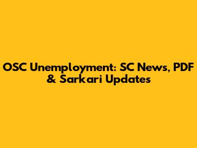 OSC Unemployment: SC News, PDF & Sarkari Updates