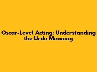 Oscar-Level Acting: Understanding The Urdu Meaning