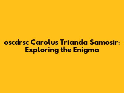 Oscdrsc Carolus Trianda Samosir: Exploring The Enigma