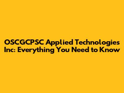 OSCGCPSC Applied Technologies: What You Need To Know