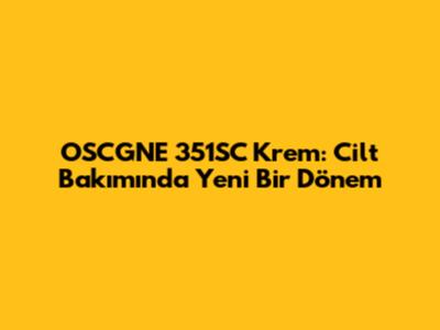 OSCGNE 351SC Krem: Cilt Bakımında Yeni Bir Dönem