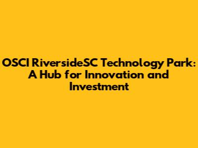 OSCI RiversideSC Technology Park: Your Gateway To Innovation