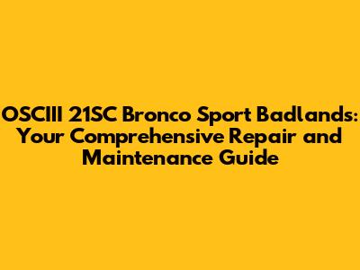 OSCIII 21SC Bronco Sport Badlands: Repair And Maintenance Guide