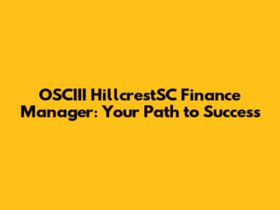 OSCIII HillcrestSC Finance Manager: Career Guide