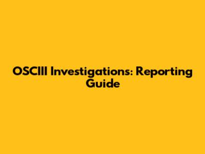 OSCIII Investigations: Reporting Guide