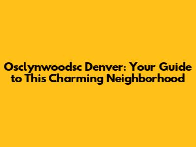 Osclynwoodsc Denver: Your Guide To This Charming Neighborhood