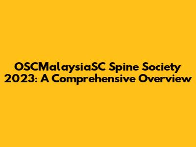 OSCMalaysiaSC Spine Society 2023: A Comprehensive Overview