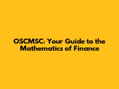 OSCMSC: Your Guide To The Mathematics Of Finance
