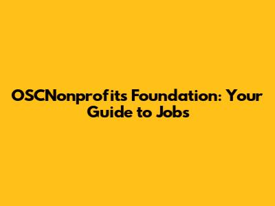 OSCNonprofits Foundation: Your Guide To Jobs