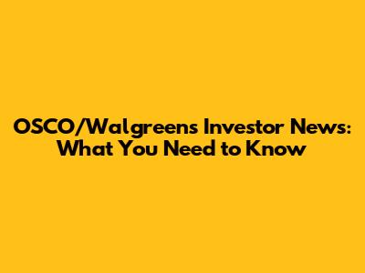 OSCO/Walgreens Investor News: What You Need To Know