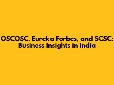 OSCOSC, Eureka Forbes, And SCSC: Business Insights In India