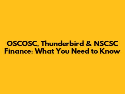 OSCOSC, Thunderbird & NSCSC Finance: What You Need To Know