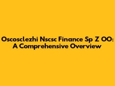 Oscosclezhi Nscsc Finance Sp Z OO: A Comprehensive Overview