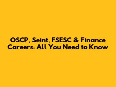 OSCP, Seint, FSESC & Finance Careers: All You Need To Know
