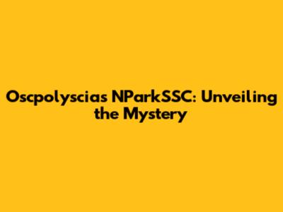Oscpolyscias NParkSSC: Unveiling The Mystery