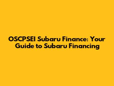 OSCPSEI Subaru Finance: Your Guide To Subaru Financing