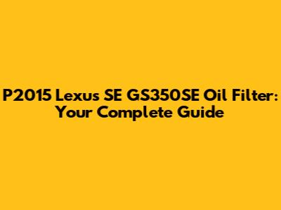 Hey guys, let's dive into something super important for your Lexus SE GS350SE: the oil filter. Keeping your engine happy and healthy is all about regular maintenance, and that starts with the right oil filter. In this guide, we'll break down everything you need to know about the P2015 Lexus SE GS350SE oil filter, from why it matters to how to choose the best one for your ride. We'll also cover when and how to change it, so you can keep your Lexus running smoothly for years to come. Buckle up, because we're about to get oily (figuratively, of course!).