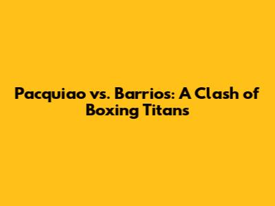 The Impact of a Pacquiao vs. Barrios Fight