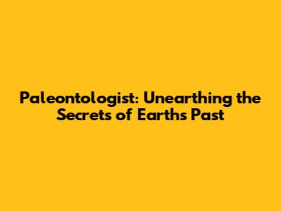 Paleontologist: Unearthing The Secrets Of Earth's Past