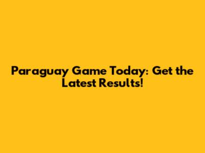 Paraguay Game Today: Get The Latest Results!