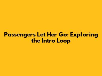 Passenger's Let Her Go: Exploring The Intro Loop