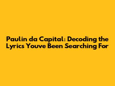 Paulin Da Capital: Decoding The Lyrics You've Been Searching For
