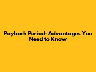 Payback Period: Advantages You Need To Know