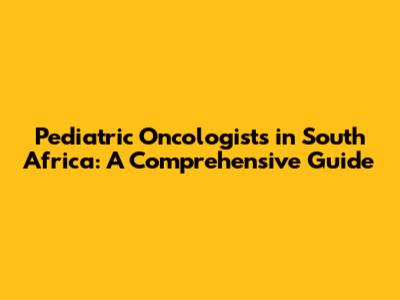 Pediatric Oncologists In South Africa: A Comprehensive Guide