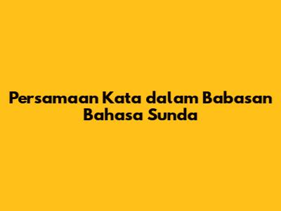 Persamaan Kata Dalam Babasan Bahasa Sunda