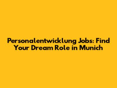 Personalentwicklung Jobs: Find Your Dream Role In Munich