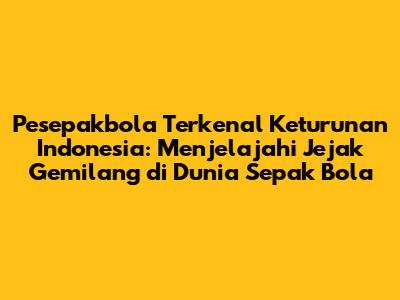 Pesepakbola terkenal keturunan Indonesia telah membuktikan bahwa darah Indonesia mampu berbicara di kancah dunia. Dengan dedikasi, kerja keras, dan semangat juang yang tinggi, mereka telah mengukir sejarah dalam dunia sepak bola. Mereka tidak hanya meraih kesuksesan pribadi, tetapi juga menginspirasi generasi muda Indonesia untuk bermimpi dan berjuang meraih kesuksesan. Mereka adalah bukti nyata bahwa tidak ada yang tidak mungkin jika kita memiliki impian dan kemauan untuk bekerja keras.