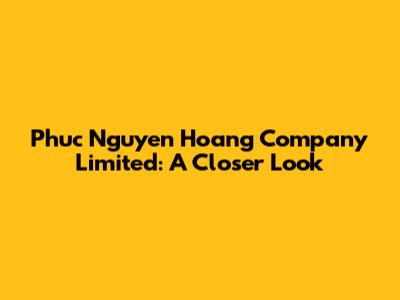 Phuc Nguyen Hoang Co., Ltd: A Closer Look