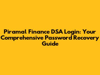 Piramal Finance DSA Login: Password Recovery Guide