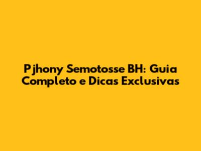 Pjhony Semotosse BH: Guia Completo E Dicas Exclusivas