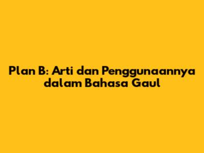 Bahasa gaul memang selalu menarik untuk dibahas. Istilah-istilah baru muncul setiap hari, dan salah satu yang cukup sering kita dengar adalah "Plan B". Tapi, apa sih sebenarnya arti dari "Plan B" dalam bahasa gaul? Nah, daripada bingung, yuk kita bahas tuntas mengenai apa itu Plan B, bagaimana penggunaannya dalam percakapan sehari-hari, dan kenapa istilah ini begitu populer di kalangan anak muda. Jadi, simak terus ya!