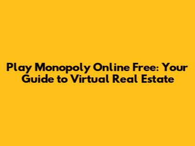 Play Monopoly Online Free: Your Guide To Virtual Real Estate