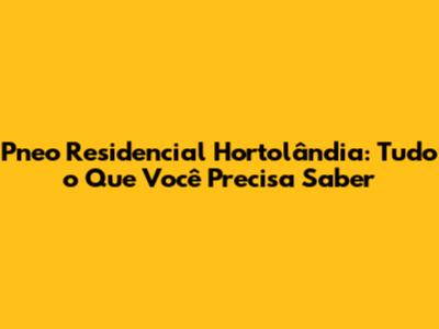 Pneo Residencial Hortolândia: Seu Guia Completo