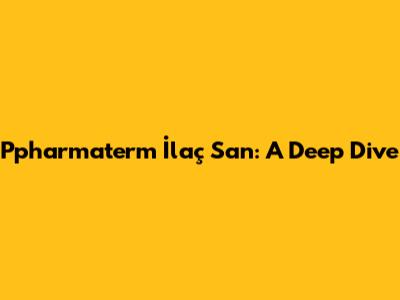 Ppharmaterm İlaç San: A Deep Dive