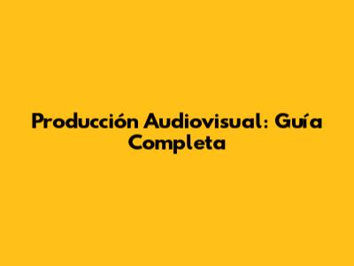 Producción Audiovisual: Guía Completa