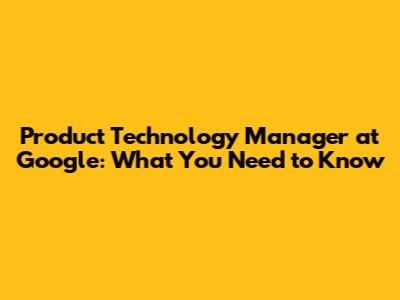 Product Technology Manager At Google: What You Need To Know