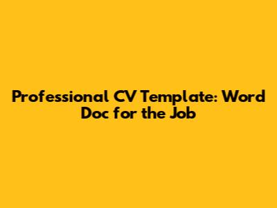 Professional CV Template: Word Doc For The Job