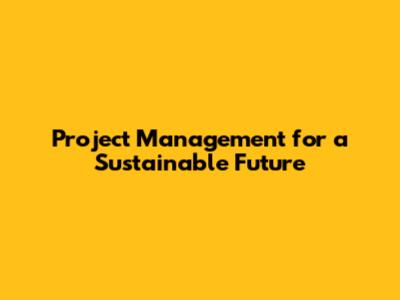 Project Management For A Sustainable Future