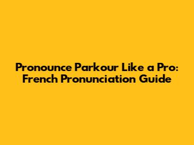 Pronounce Parkour Like A Pro: French Pronunciation Guide