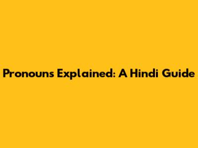 Pronouns Explained: A Hindi Guide