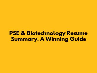 PSE & Biotechnology Resume Summary: A Winning Guide