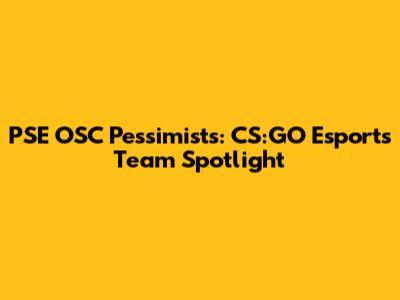 Let's dive into the exciting world of Counter-Strike: Global Offensive (CS:GO) and shine a spotlight on a team making waves: the PSE OSC Pessimists. This isn't just another esports team; it's a story of passion, dedication, and the relentless pursuit of victory in the highly competitive arena of CS:GO. We'll explore what makes them tick, their journey, and why they're a team to watch. The team also competes in a variety of online tournaments, showcasing their skills and determination against other amateur and semi-professional teams. These tournaments provide valuable experience and opportunities for the team to improve their strategies and teamwork. Many successful esports teams begin with grassroots efforts, and the PSE OSC Pessimists are a testament to this. Their commitment to growth and development is evident in their participation in various leagues and tournaments.