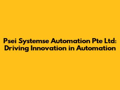 Psei Systemse Automation Pte Ltd: Innovative Solutions