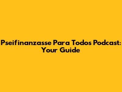 Pseifinanzasse Para Todos Podcast: Your Guide