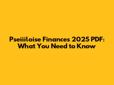 Pseiiiloise Finances 2025 PDF: What You Need To Know