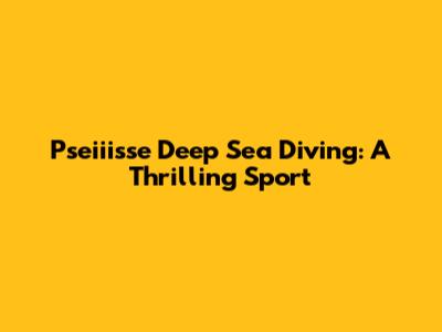 Pseiiisse Deep Sea Diving: A Thrilling Sport